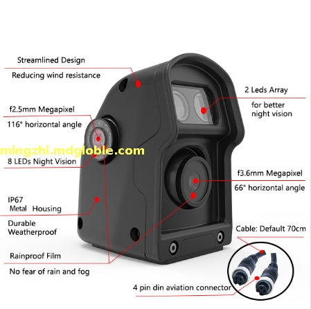 电子后视镜盲区监测系统可实时显示车辆动态盲区监测影像,克服传统光学后视镜存在的左右两侧及前部的视野盲区。它比传统光学后视镜具有更清晰的影像。具有宽动态,强光抑制(明暗交界两区看的见),超低照度和表面采用钢化滑水玻璃(夜晚、雨天看的见),智能加热功能(解决寒冷地区结霜的问题)。为驾驶员提供良好的视野,降低因视野盲区导致的安全驾驶事故,是司机行车好帮手。