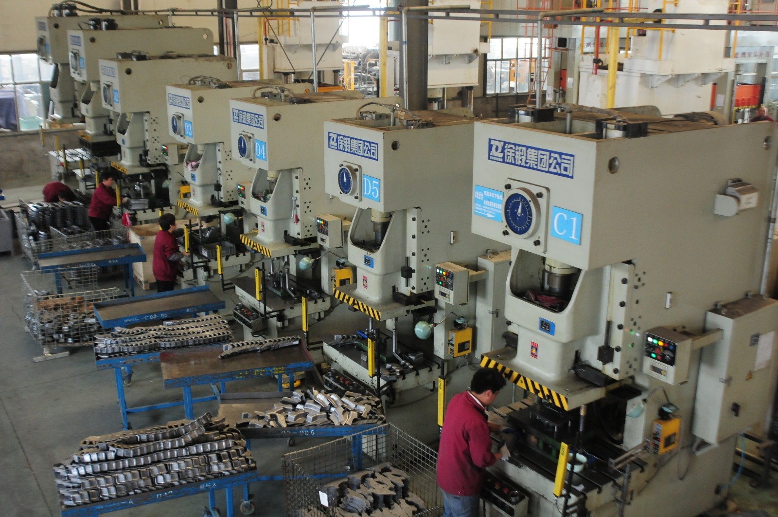 公司具有模具设计制造能力(模具设计开发工程技术人员10余人,模具车间加工中心、数控铣、电火花线切割等设备齐全),具备从模具设计制造、液压、冲压、机械加工、组合焊接、热处理、检验为一体的完善的生产制造体系。实现了从原材料入厂、各工序加工制造、到成品入库发出全部由厂内完成,质量管控能力强,降低了生产成本,提高了产品竞争力。公司生产的汽车用底盘悬挂冲压件、拉伸组合件、轿车前后摆臂、发动机主横梁、油封座圈、转向节主销、后桥壳盖、防尘盘、调整垫片等产品质量稳定,供货及时。